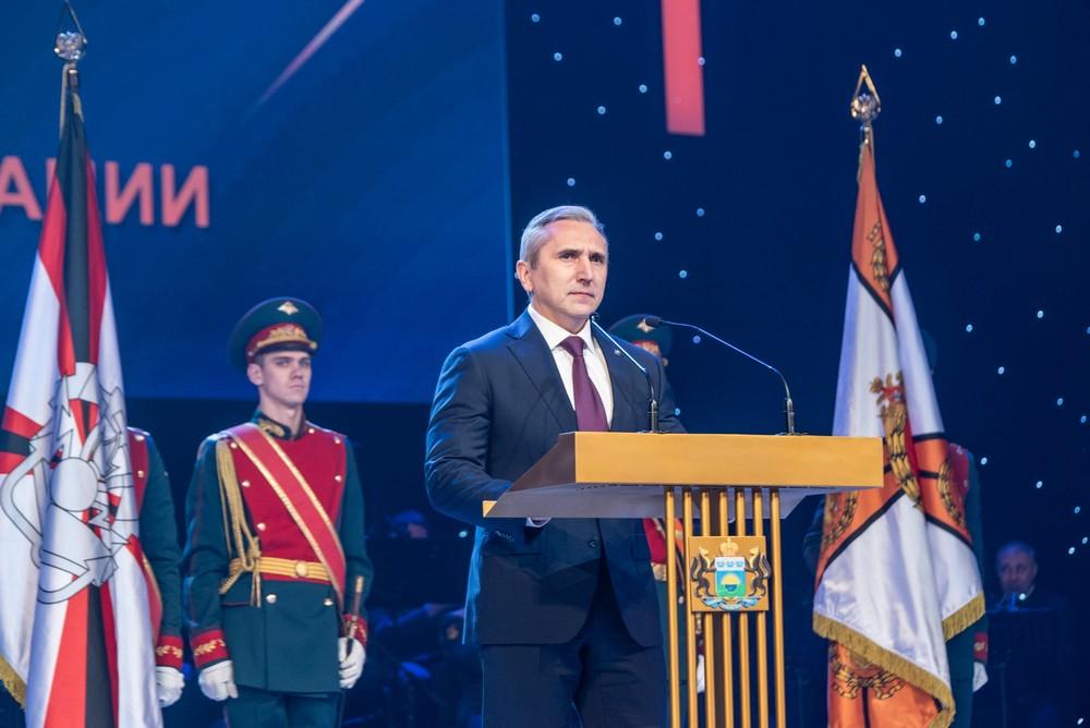 Участники торжественного собрания во главе с губернатором стоя приветствовали бурными аплодисментами присутствовавшего в зале выпускника ТВВИКУ полковника Рустама Сайфуллина, удостоенного звания Героя России за личное мужество и военное мастерство, проявленные во время специальной военной операции.