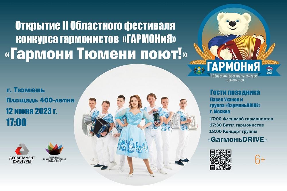 12 июня в 17.00 на площади 400-летия Тюмени состоится масштабное открытие II Областного фестиваля-конкурса гармонистов «ГАРМОНиЯ».