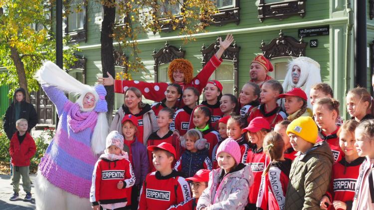 В 14 часов 30 минут на пешеходной улице Дзержинского дали старт шествию, участие в котором приняли хореографический ансамбль "Серпантин", мастерская событий "Арт-хит", воспитанники школы искусств Боровская, фольклорный ансамбль "ЯромилЪ". Артисты созывали прогуливающихся на открытие сезона во Дворце культуры " Нефтяник".