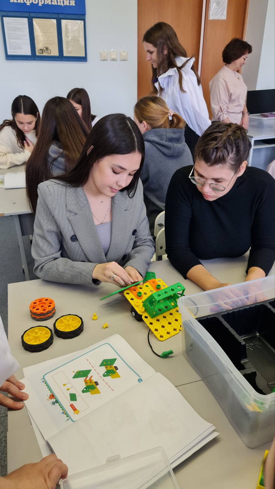 Для студентов третьего курса праздник состоялся в стенах института. Волонтёры просвещения Балыбердина Светлана, Гусева Полина, Куприянюк Ксения и Новикова Анастасия (гр. 38-02ПО(2)22НО_ДО) под руководством наставника к.п.н., доцента Бусловой Н. С. подготовили мастер-класс по образовательной робототехнике. Будущие воспитатели с интересом проектировали снегоуборочные машины, с увлечением программировали роботов-помощников, с азартом участвовали в соревнованиях по управлению созданными моделями.