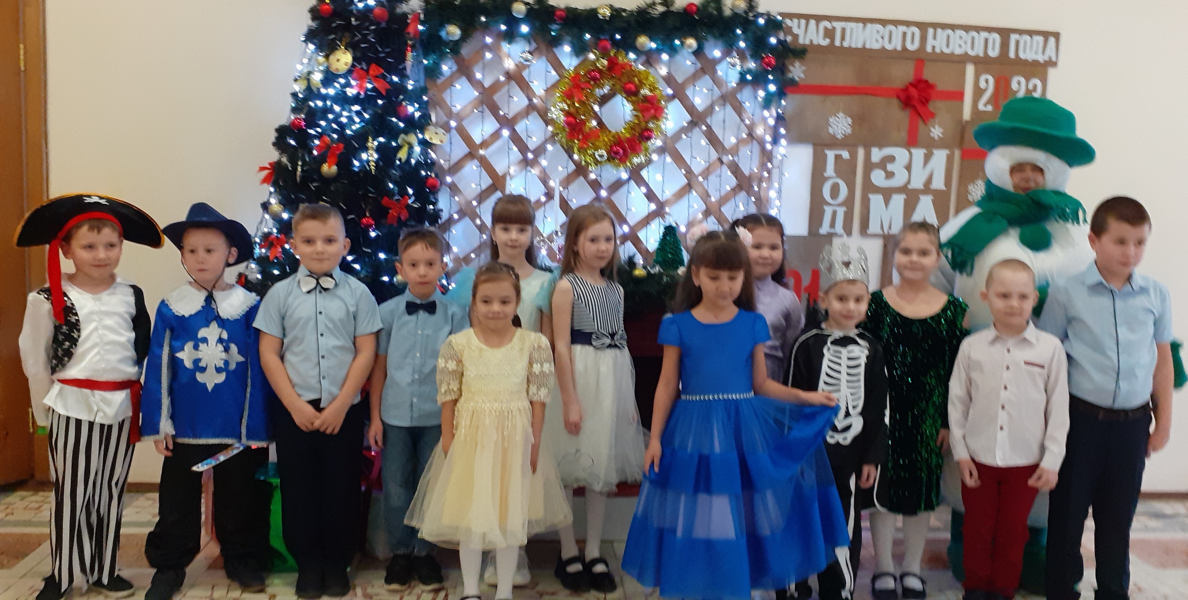 А закружили их в хороводе тётка Арина и тётка Акулина, которые встречали гостей у входа и зазывали всех на праздничный вечер. А в руках у них был волшебный сундучок, а в сундучке том, чего только не было: загадки, конкурсы, викторины, скороговорки, различные забавы на всякие вкусы и нравы. А ёще к нам на вечер заглянул Снеговичок, который провел с ребятами конкурс «Самый меткий» и «Мультвикторину».