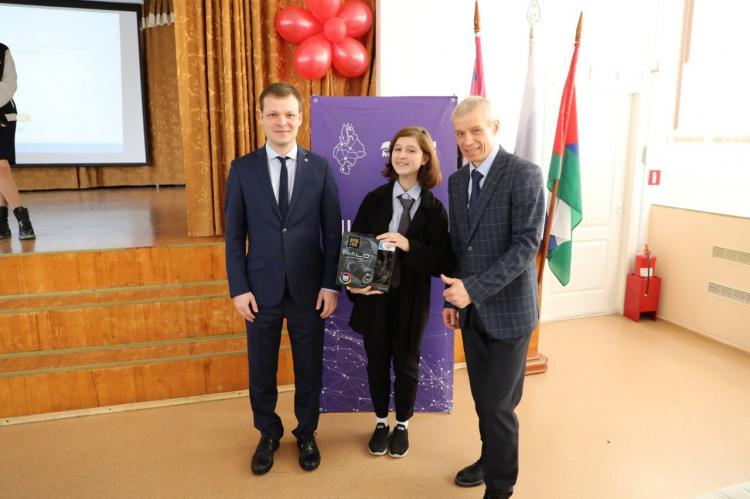 Самый активный ученик получил подарок от координатора федерального проекта "Цифровая Россия" в субъекте Андрея Лозицкого.
