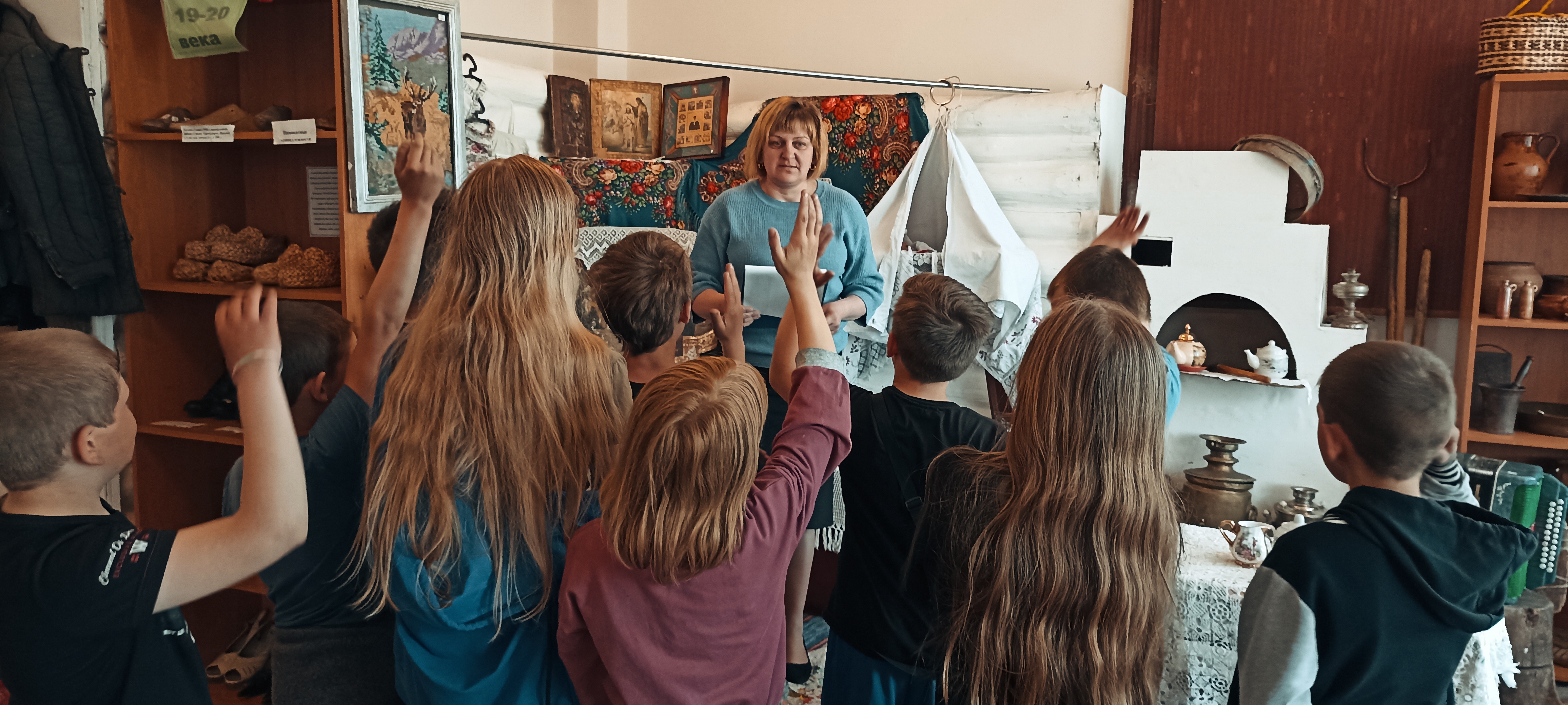 В начале мероприятия ребята узнали об истории создания музеев, о крупнейшем музее в России и в мире. Затем для ребят прошла экскурсия по Колесниковскому музею, где они познакомились с традициями русской избы, предметами быта, народной одеждой. А ещё при помощи ухвата достали чугунок из печи, покачали люльку, поиграли на ложках, примерили русские народные костюмы.