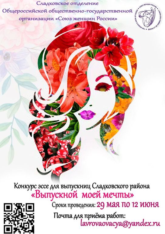 Сладковское отделение Общероссийской общественно-государственной организации «Союз женщин России» с 29 мая запускает конкурс эссе для выпускниц Сладковского района «Выпускной моей мечты».