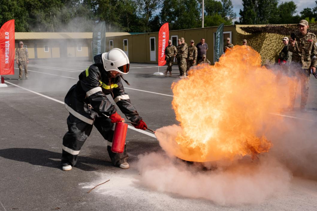Во время подготовки к пожарной эстафете участники младшей возрастной группы использовали для тушения возгорания порошковые огнетушители номер 2, старшей – номер 5. После обучения и практики ребята начали занятия по подготовке к соревнованиям по основам выживания в лесу под руководством инструктора центра «Воин» Сергея Кучевасова. Команды разделились на группы и выполняли задачи – они должны были растянуть тент, поставить палатки, развести костер и подать сигнал бедствия. Помимо вечернего обучения, ребята занимались по воинским специальностям в течение дня.