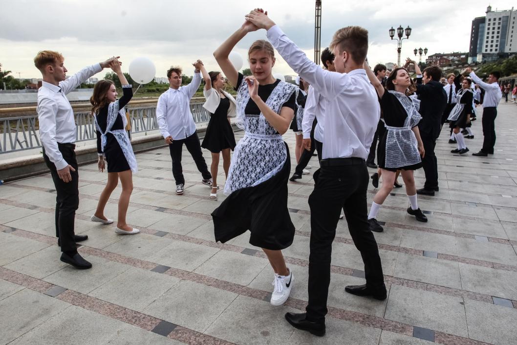 Выпускники тюменских школ станцевали сегодня, 24 июня, вальс на набережной.