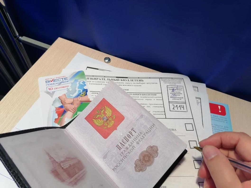 Тюменка пришла на избирательный участок № 2018 с молодым человеком. Впервые проголосовавшим вручили диплом, календарь и ручку. Молодых избирателей поздравила председатель избирательной комиссии участка Дарья Дубина.