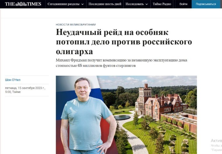 Получается, обыск был в декабре 2022 года, а до Фридмана простая мысль, что в Лондоне жить “неспокойно”, дошла только сейчас? Вот это скорость мысли у одного из богатейших людей России, избравшего по традиции “надежный причал” в столице Великобритании. Не прошло и года.