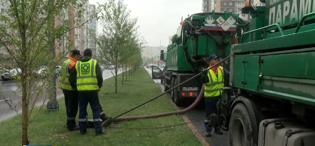К устранению последствий залпового дождя еще ночью подключились экстренные и коммунальные службы: больше 50 единиц техники и 300 человек. Работы продолжились и днем.