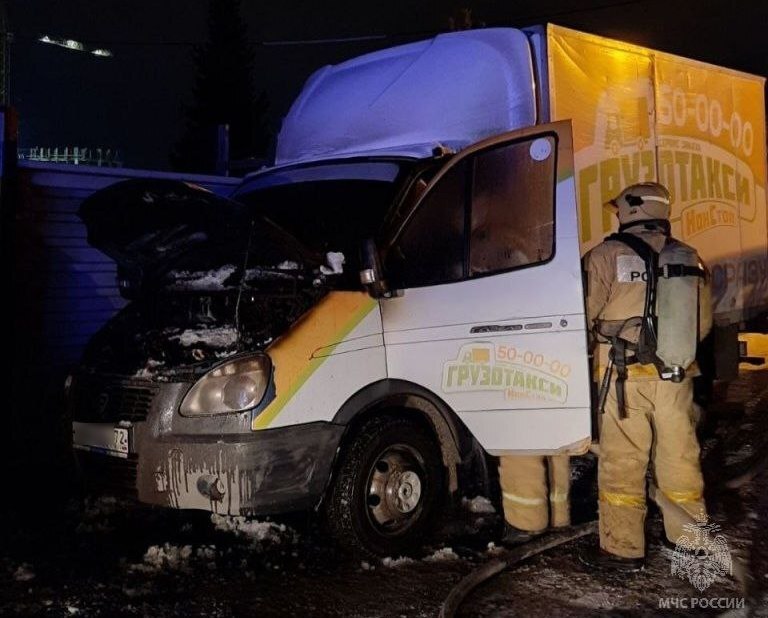 Утром в Тюмени пожарные потушили "Газель"