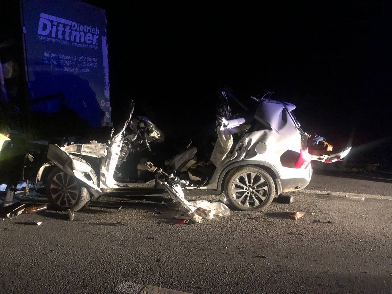 По предварительным данным, кроссовер въехал в стоящий на обочине грузовой автомобиль "Мерседес".
