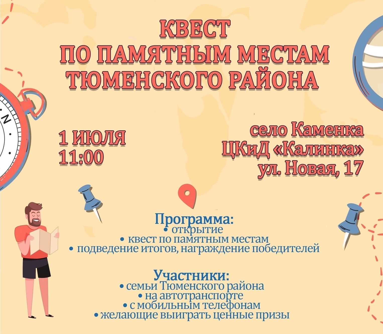 Это будет динамичная, захватывающая игра на автомобилях с поиском значимых точек - памятных мест. Команды получат подсказки.