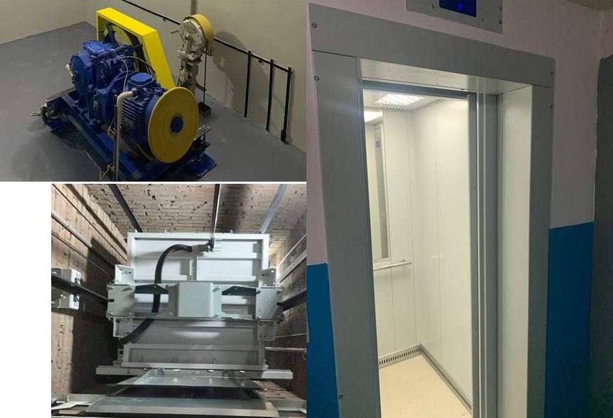 Подрядной организацией демонтировано старое оборудование, отработавшее назначенный 25-летний нормативный срок эксплуатации, установлены новые двери шахты, смонтированы новые кабины, а также подъемное оборудование и станции управления, проложены новые инженерные сети, обеспечивающие работу лифтового оборудования, приведены в порядок машинные помещения - выполнены отделочные работы.