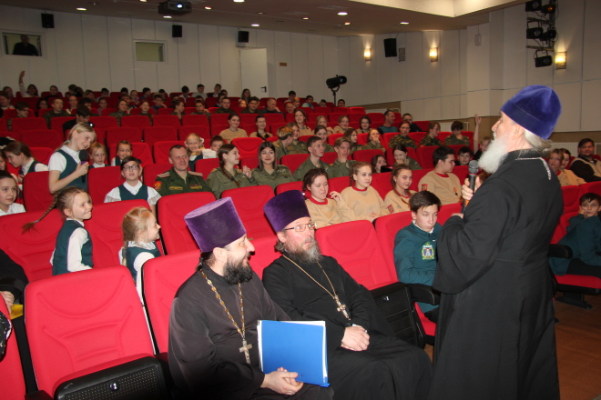 Залу так понравилась первая часть его высказывания, что зрители сразу зааплодировали и не услышали второй - юмористической. Митрополит попутно объяснил, что духовное училище - это как обычная школа, но с дополнительным изучением православной культуры.