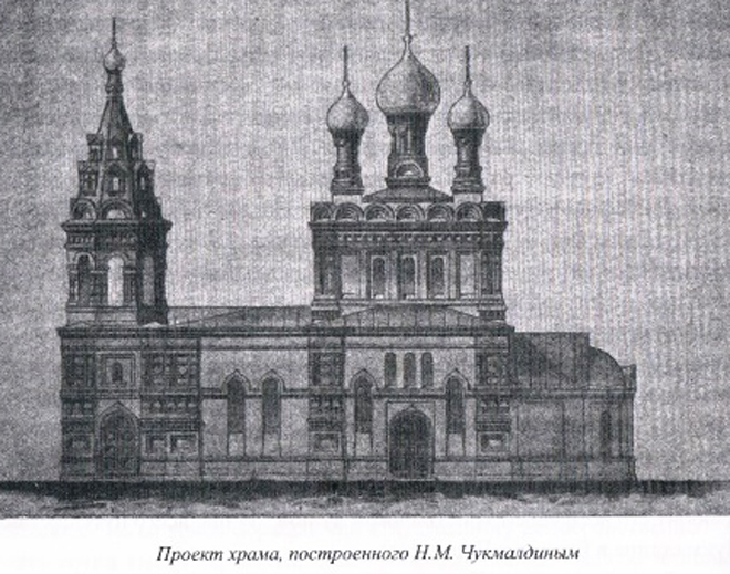 Долгое время богослужения проходили в переданном приходу здании школы, построенной купцом Н.М.Чукмалдиным. Здесь же находились все подсобные помещения прихода.