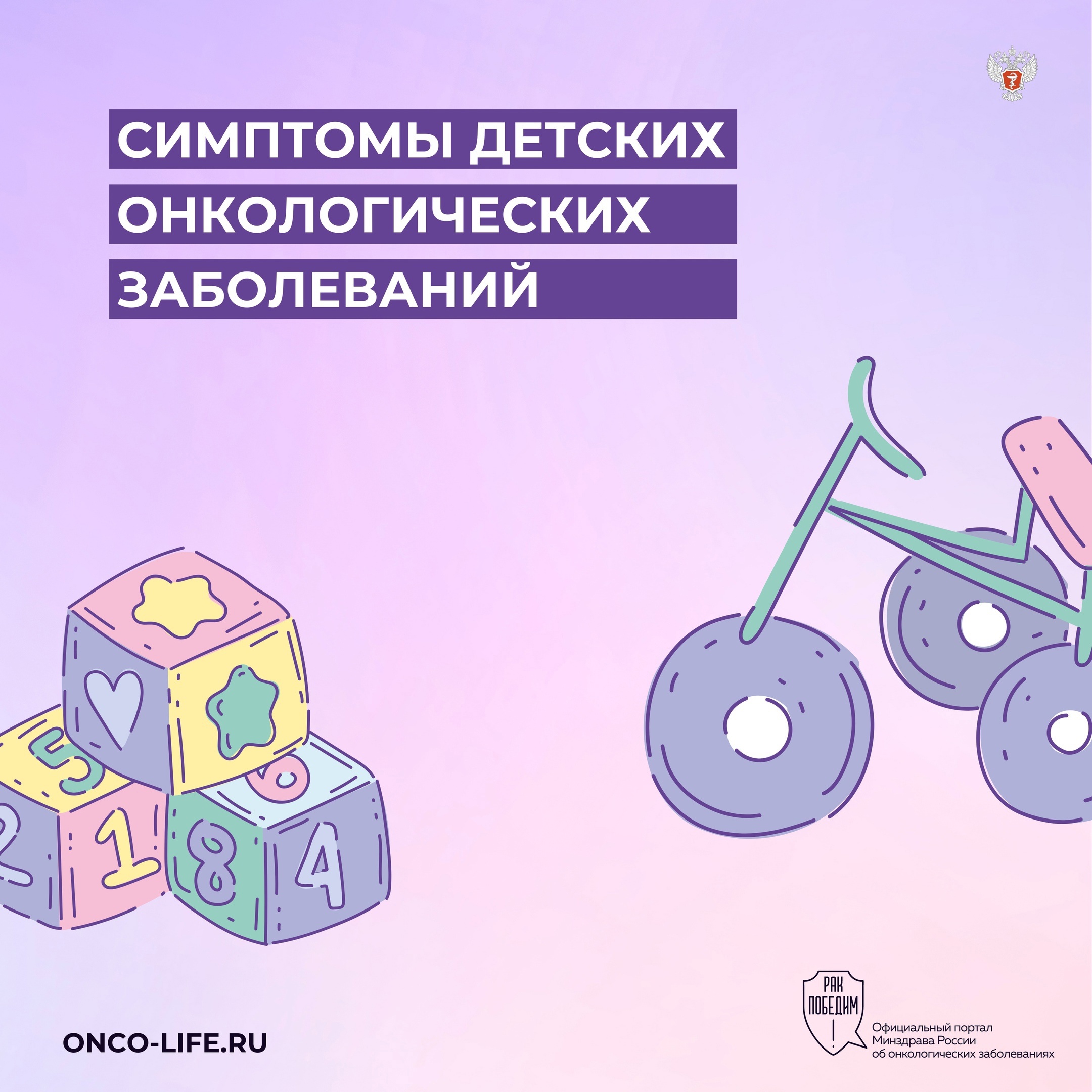 Сегодня специалисты Минздрава России собрали для вас основные симптомы детских онкологических заболеваний. Помните: каждый из этих признаков – веский повод незамедлительно записаться на прием к педиатру.
