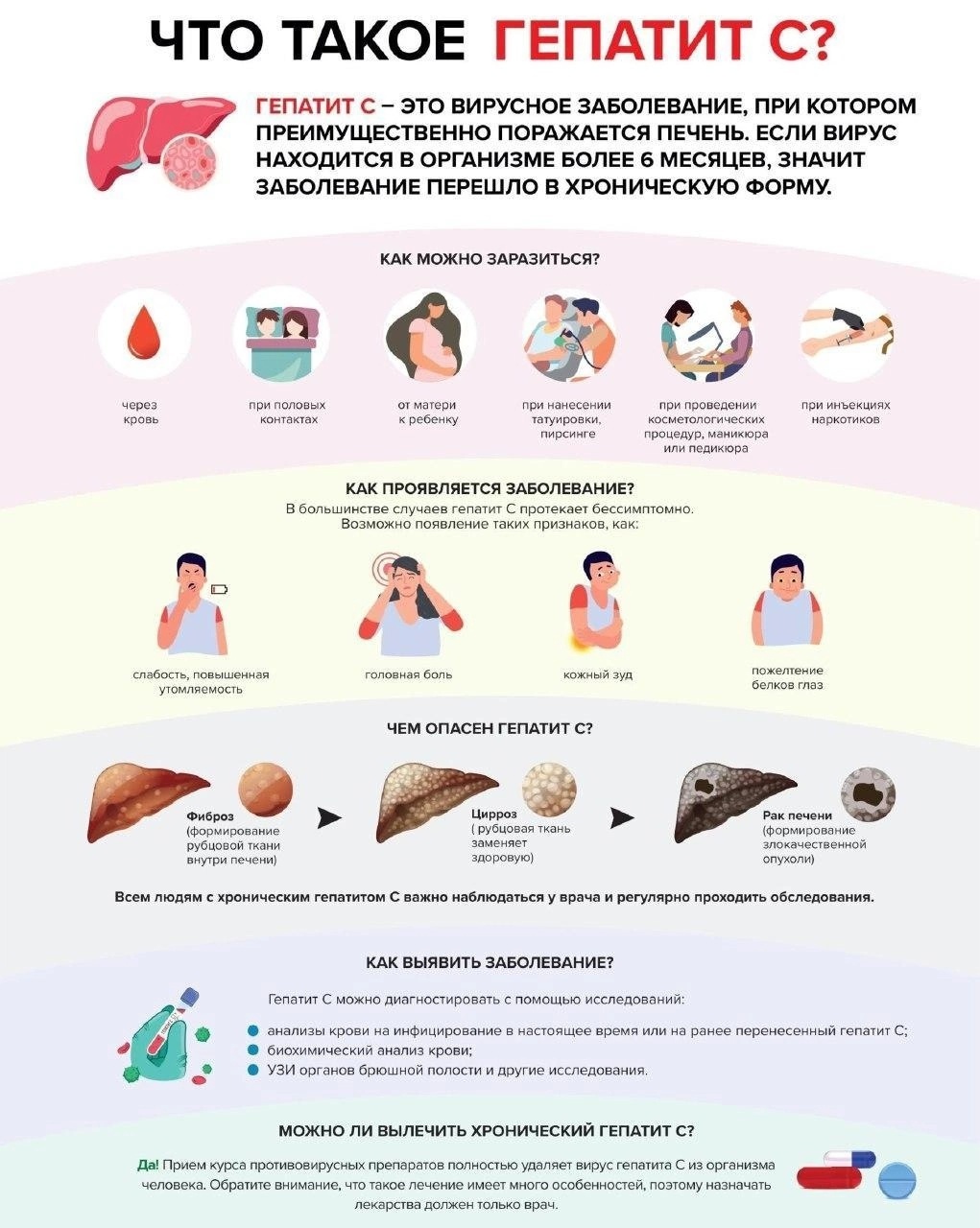 Это заболевание вызывается вирусом гепатита С, передается половым путем, а также от инфицированной матери ребенку во время беременности или родов. Заражение чаще всего происходит, когда кровь инфицированного человека попадает в кровь или на поврежденную кожу (слизистые оболочки) другого человека.