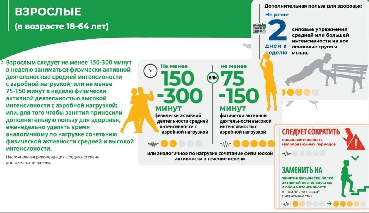 Любой уровень физической активности лучше, чем ее отсутствие, и чем он выше, тем лучше.