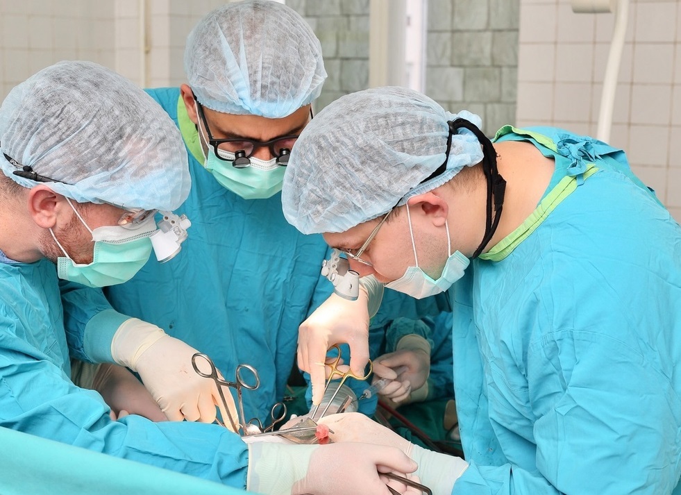 Восстановление сонной артерии требовало предельной точности и концентрации. Доктор с коллегами Антоном Шадриным и Денисом Ступаковым, используя микрохирургические инструменты и современные методы шовной техники провели операцию без осложнений.