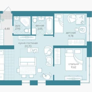 - Общая площадь: 52 м²